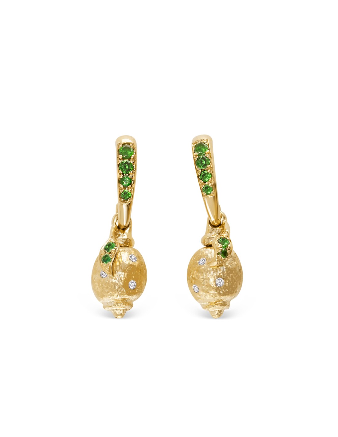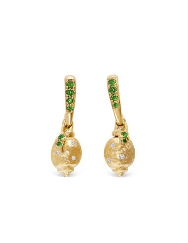 Orecchini in oro giallo 18kt con 0.06ct diamanti purezza Vs-VVs, colore D-F e 0.30 ct di Tsavoriti naturali
