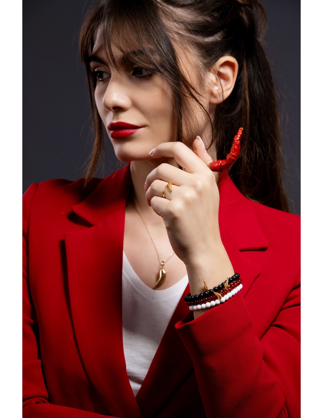 1Bracciale elastico in perline di corniola mm. 6 e charm in oro giallo 18 kt.