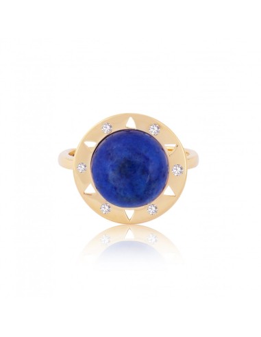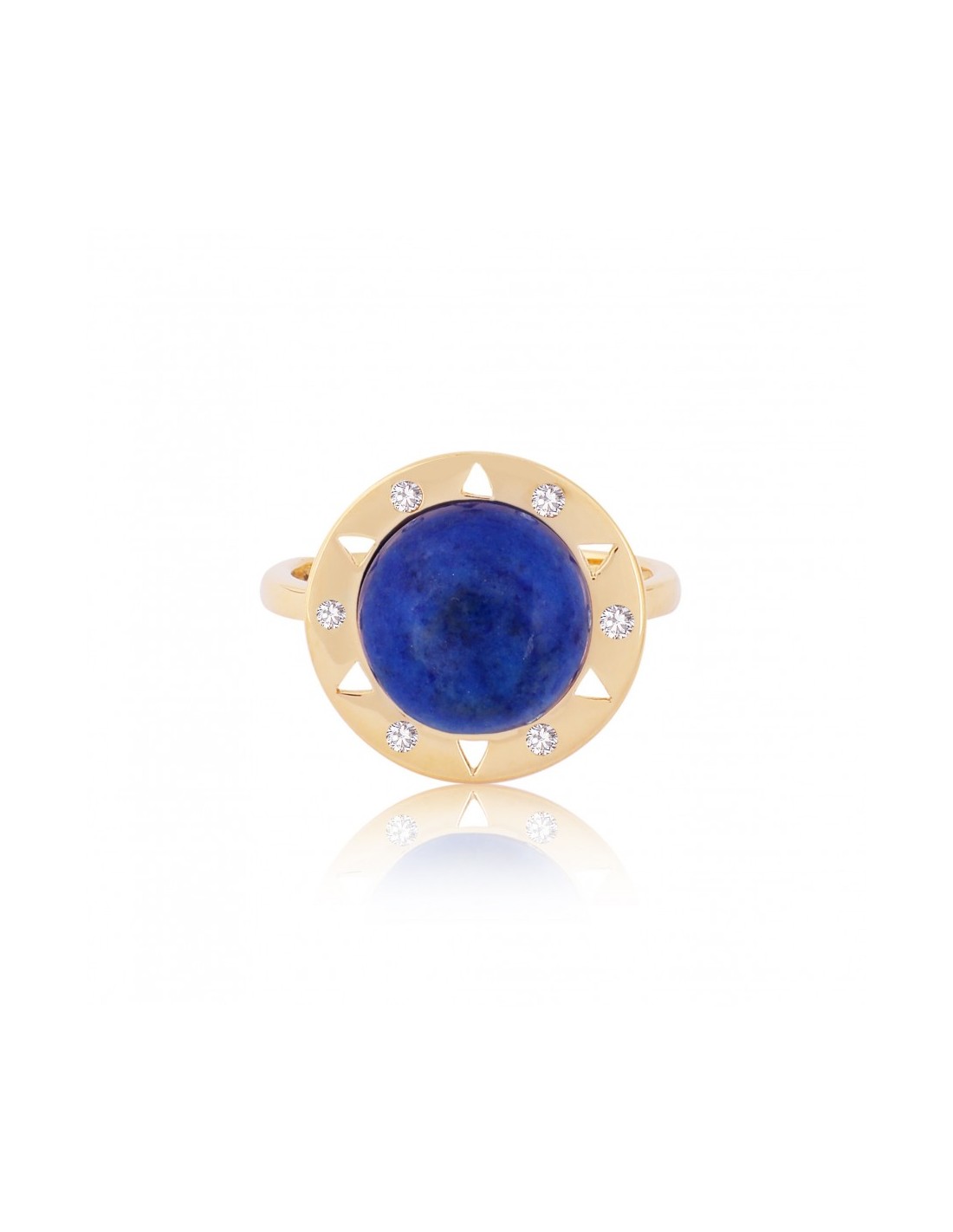 Anello in oro giallo 18 kt. con lapis lazuli naturale e 0.07 ct. di diamanti colore D-F, purezza VVs-Vs e taglio ex-vg.