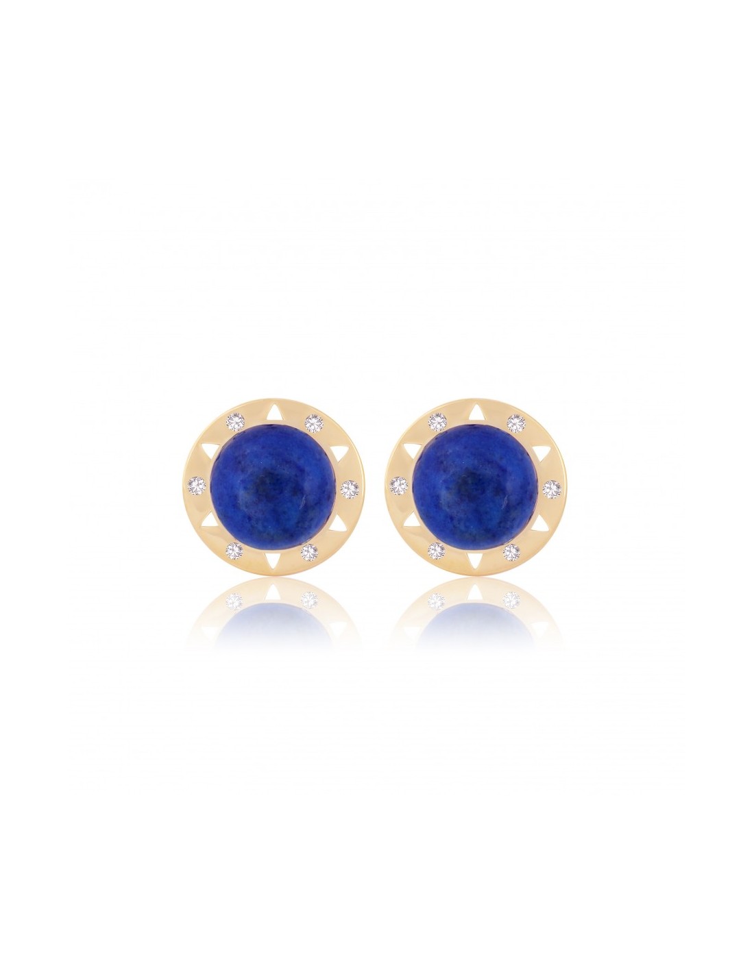 Orecchini in oro giallo 18 kt. con lapislazzuli naturale e 0.14 ct. di diamanti colore D-F, purezza VVs-Vs e taglio ex-vg.