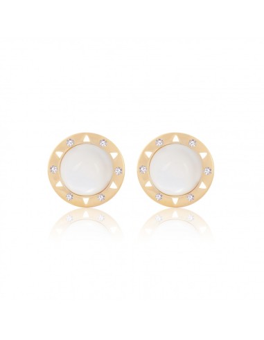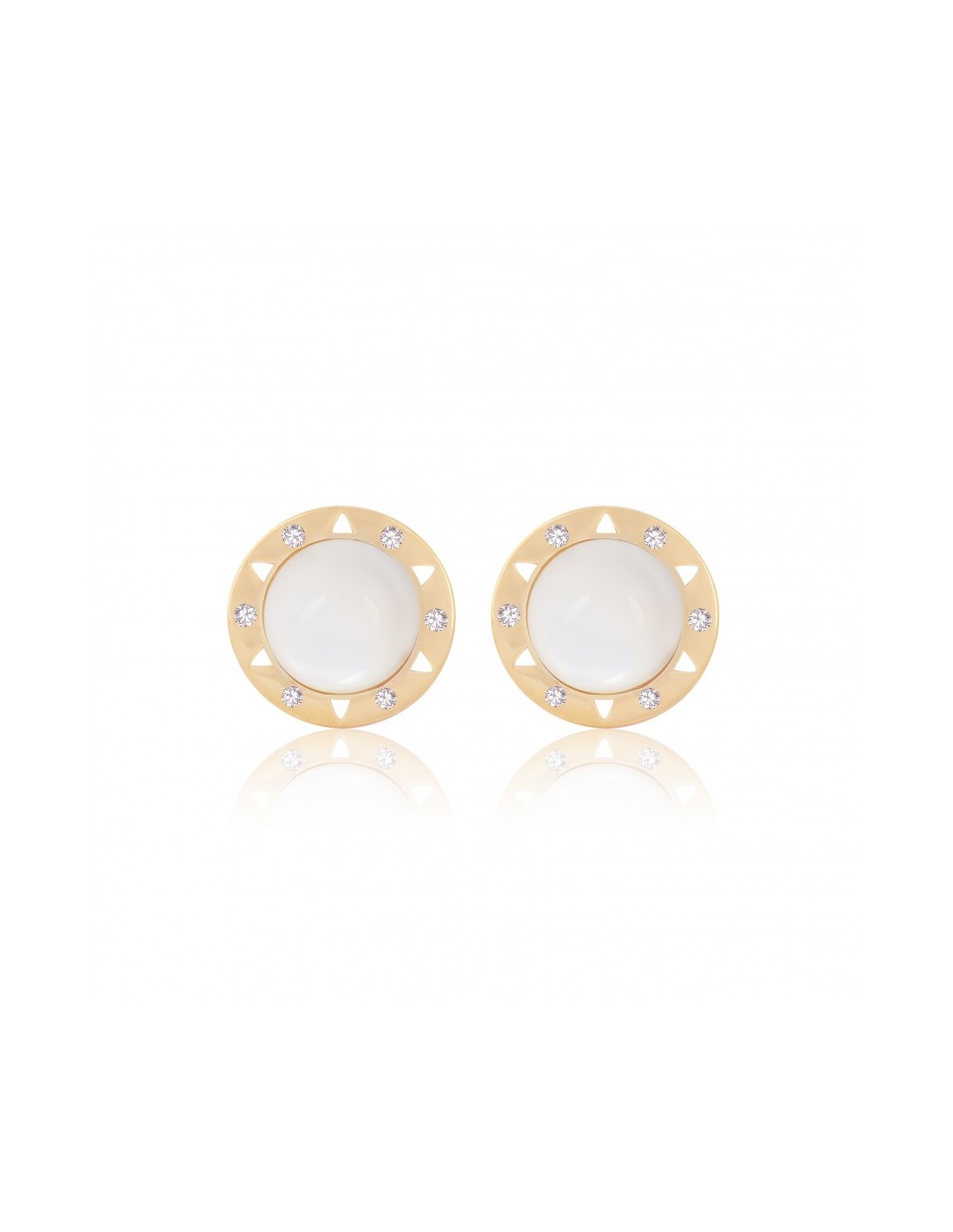 Orecchini in oro giallo 18 kt. con madreperla naturale e 0.14 ct. di diamanti colore D-F, purezza VVs-Vs e taglio ex-vg.